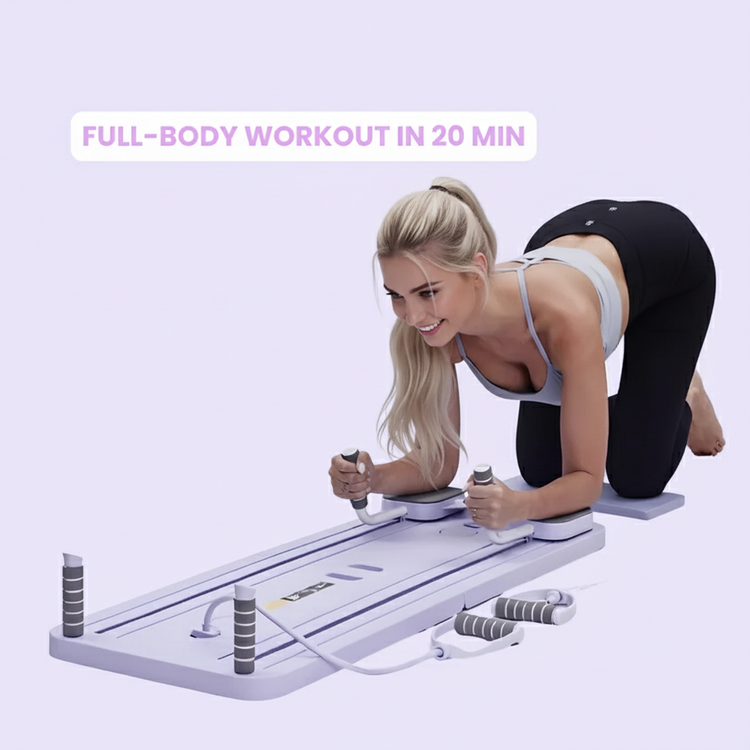 Transform your workout routine with our compact Pilates Reformer Set that fits any space and supports up to 400 lb. Enjoy smooth resistance, guided workouts, and joint-friendly padding for an all-in-one fitness solution.
