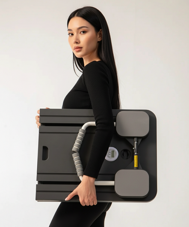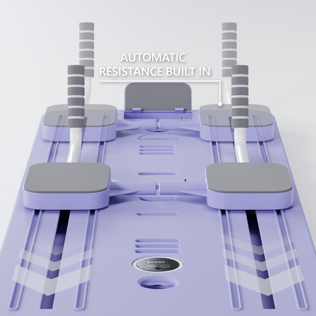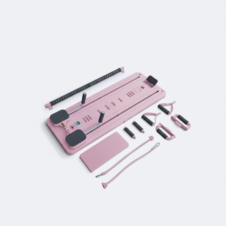 Our compact Pilates Reformer Set, supports up to 400 lb, featuring a built-in spring-resistance system for smooth tension and rebound. Quick-attach resistance bands, push-up handles, and an adjustable cushioned footbar ensure a full-body Pilates experience. Comes fully assembled—no tools required.